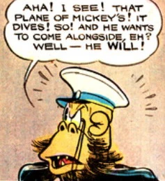 Dr. Vulter is an anthropomorphic ape, resembling a gorilla. He is a megalomaniacal pirate captain and mad scientist, somewhat modeled after Jules Verne's Captain Nemo character. Using a futuristic submarine and a small army of henchmen, he plagues the seas by stealing various ships which he aims to use for his plans of world conquest. His principal weapon is a machine in the form of a large claw which gives off magnetic-like energy: by placing it against a ship's hull Vulter can turn the whole metal ship into one large magnet which sticks weapons to the wall, making them useless. Vulter's Germanic-sounding name, his uniform and monocle, as well as his plans of world domination and militaristic gang, are obvious echoes of the Nazi menace of the time. After being defeated by Mickey, Vulter never appeared again in American stories. He was, however, used by Italian authors, starting with the 1959 story Topolino e il ritorno dell'artiglio magnetico ("Mickey Mouse and the Return of the Magnetic Claw") by Guido Martina (plot) and Giulio Chierchini (art). The character was further elaborated in this story by the claim that he never drew plans of his inventions but kept it all in his mind; this proved a bit of a problem when he suffered from amnesia. He returned occasionally and is still used from time to time by European authors.