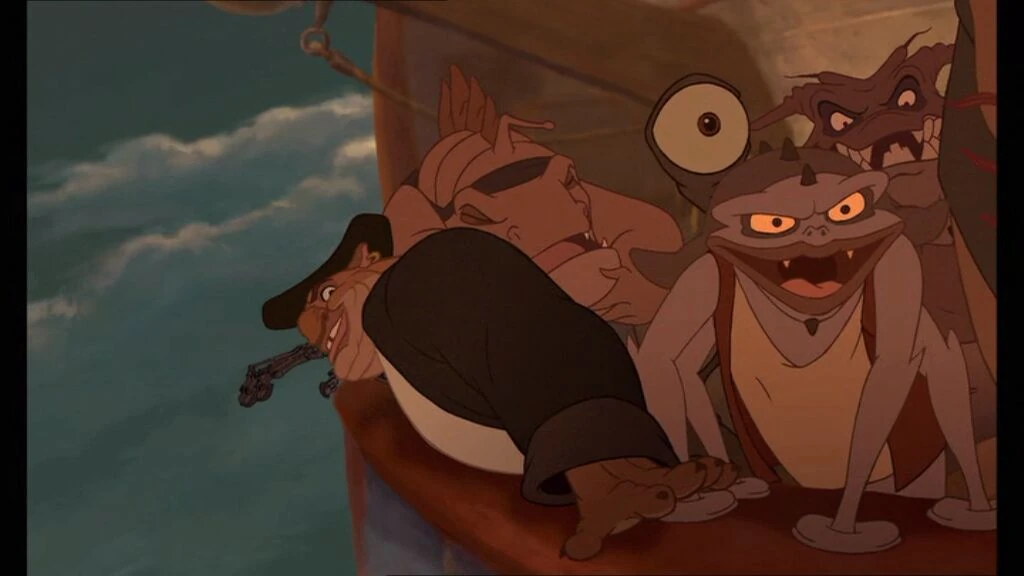 When Treasure Planet is in their sights, the pirates and Silver mutiny their captain (costing the lives of some pirates) and search for the treasure. They find the the treasure with the unwilling help of Jim Hawkins, after he defeats Mr. Scroop on the ship. Their luck changes when Flint's booby-trap is activated and some of the alien pirates are killed. The few who survive are tied up aboard the ship. However, despite being arrested, the surviving pirates cheer as the heroes finally steered them away from the exploding planet, relieved that they are still alive.